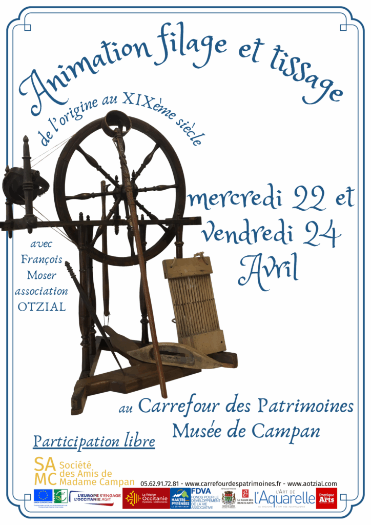 Le Carrefour des Patrimoines – Musée de Campan et l’association la Société des Amis de Madame Campan, vous invitent à découvrir l’art du filage et du tissage à travers une animation exceptionnelle proposée par Mr François Moser, conservateur du patrimoine et membre de l’association OTZIAL.