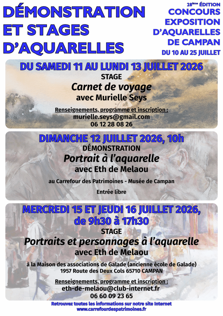 Renseignements en cliquant sur ce lien : Ouverture des inscriptions – Concours et exposition d’aquarelles de Campan 2026